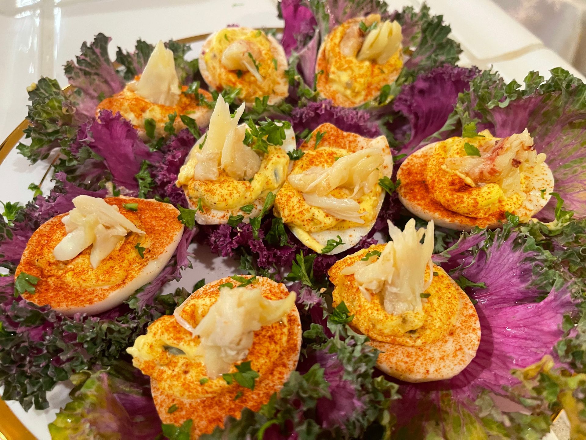 - Deviled Egg “Flight” Smoked Salmon, Crab, Caviar (4 eggs) - $14